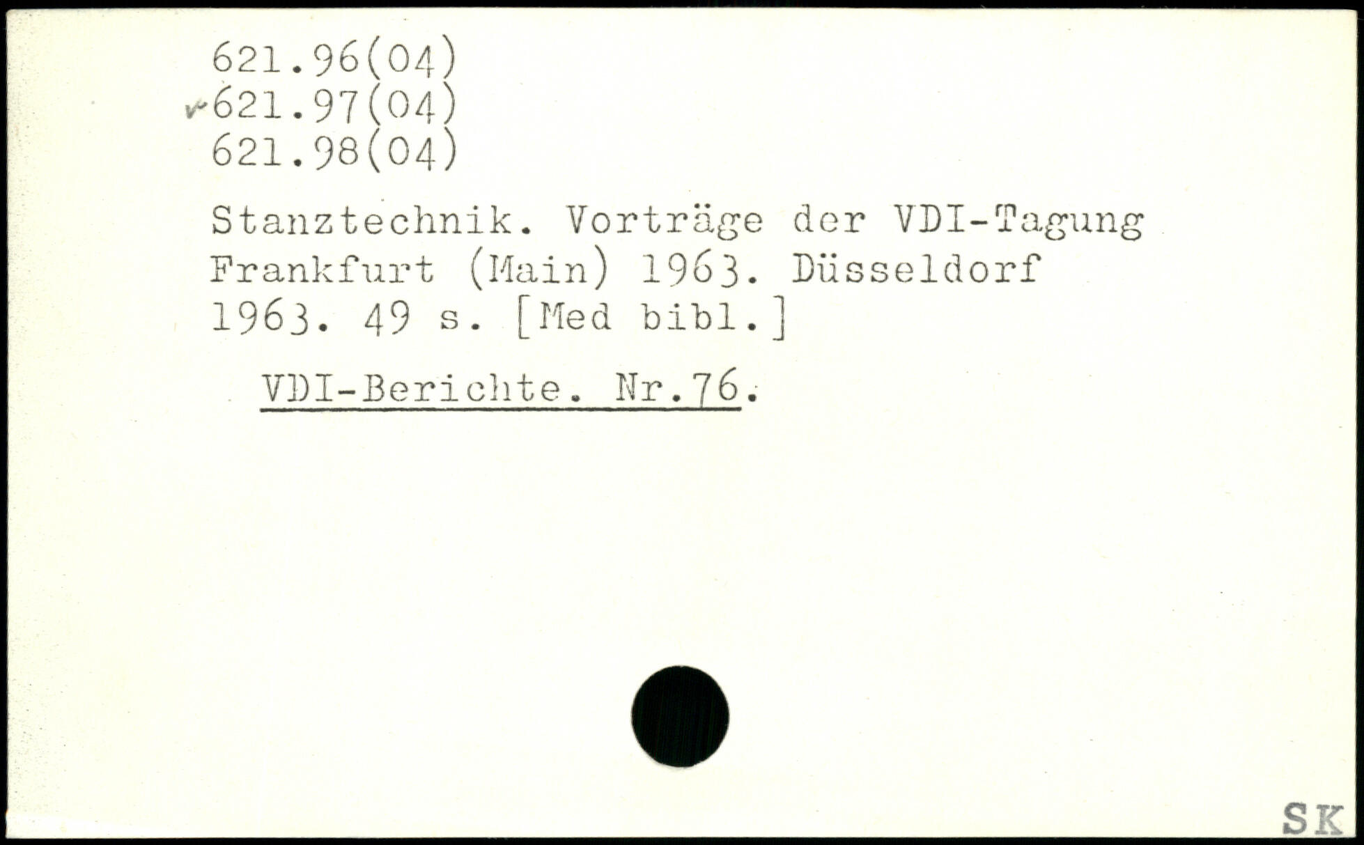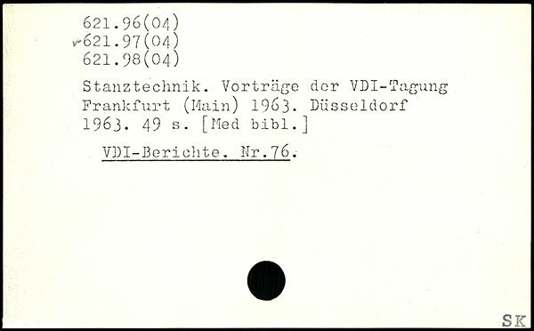 Stanztechnik. Vorträge der VDI-Tagung Frankfurt (Hain) 196S3- Düsseldorf 1963.