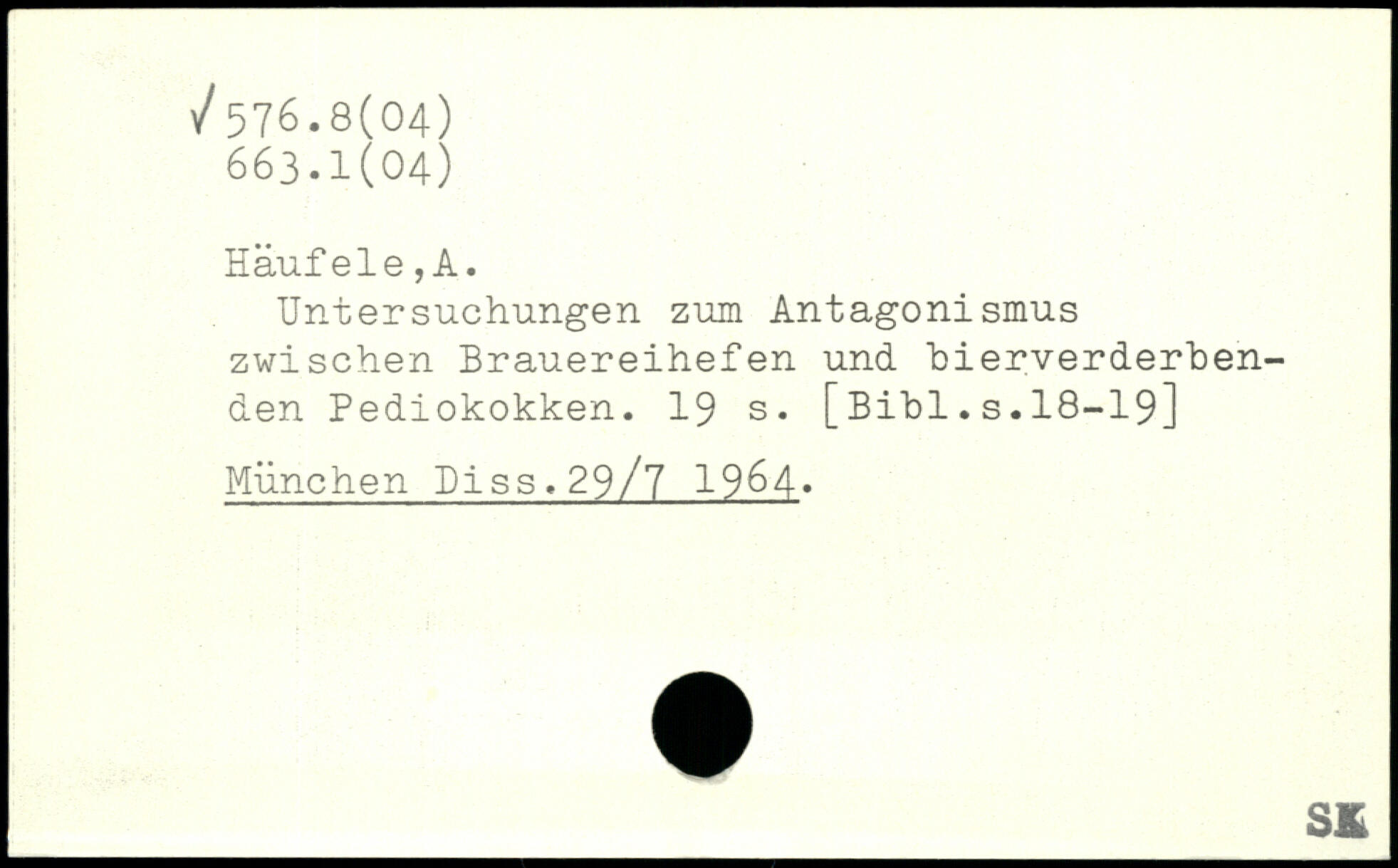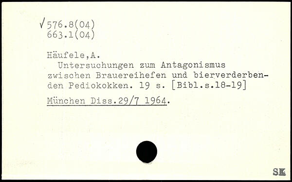 Untersuchungen zum Antagonismus zwischen Brauereihefen und bierverderben-den Pediokokken.