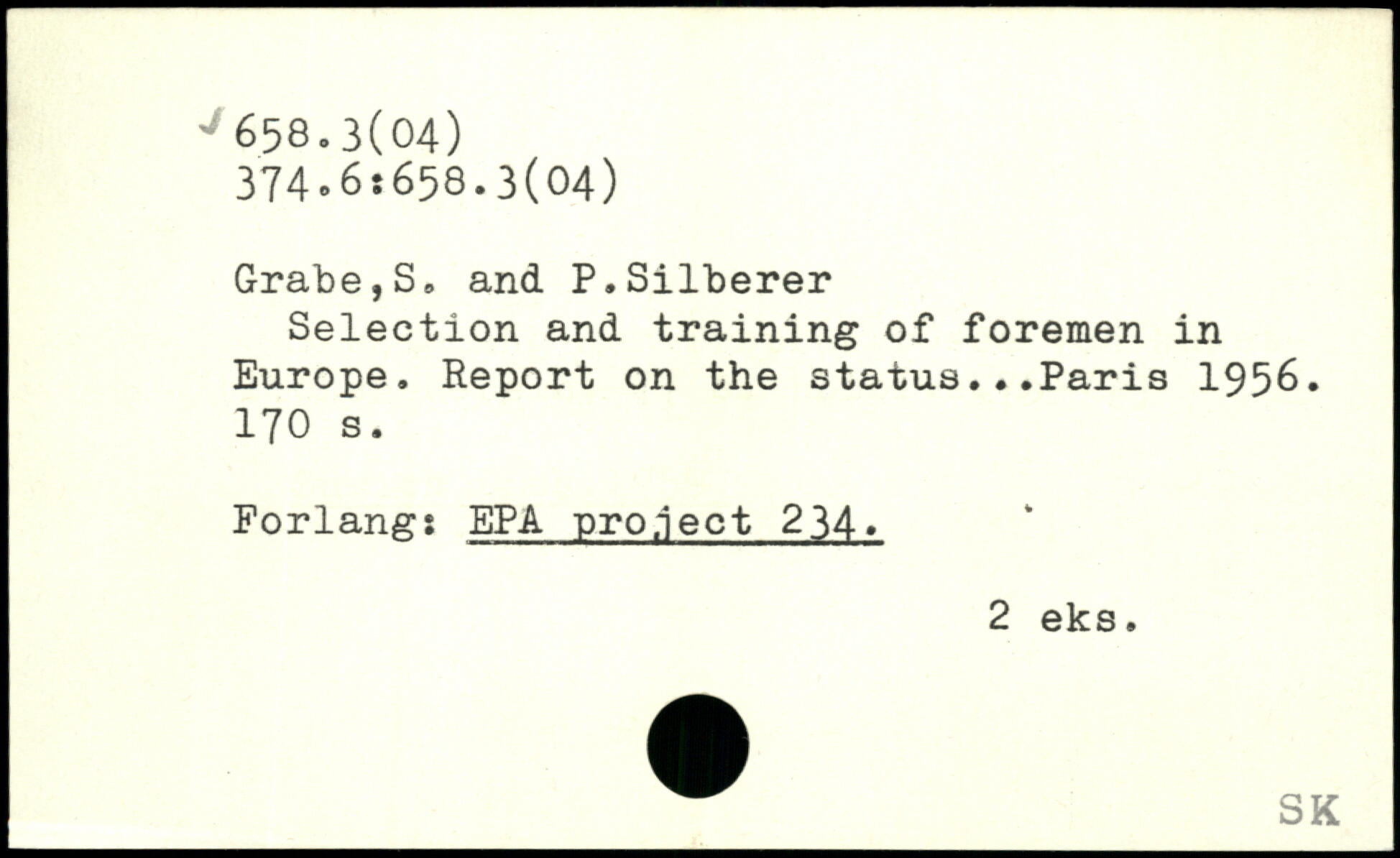 Selection and training of foremen in Europe. Report on the status. ..