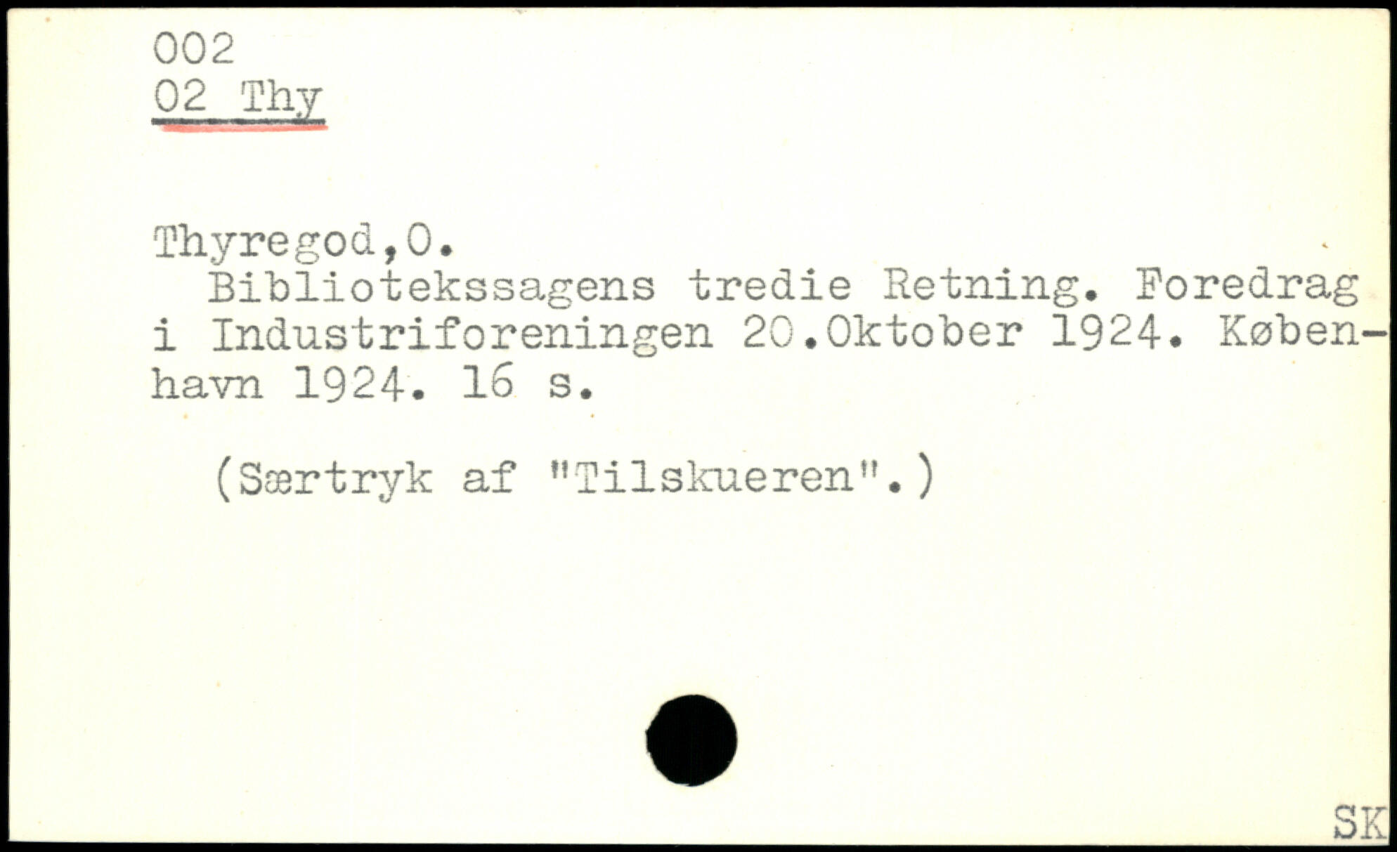 Bibliotekssagens tredie Retning. Poredrag i Industriforeningen 20.Oktober 1924.