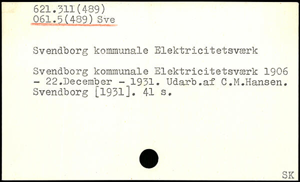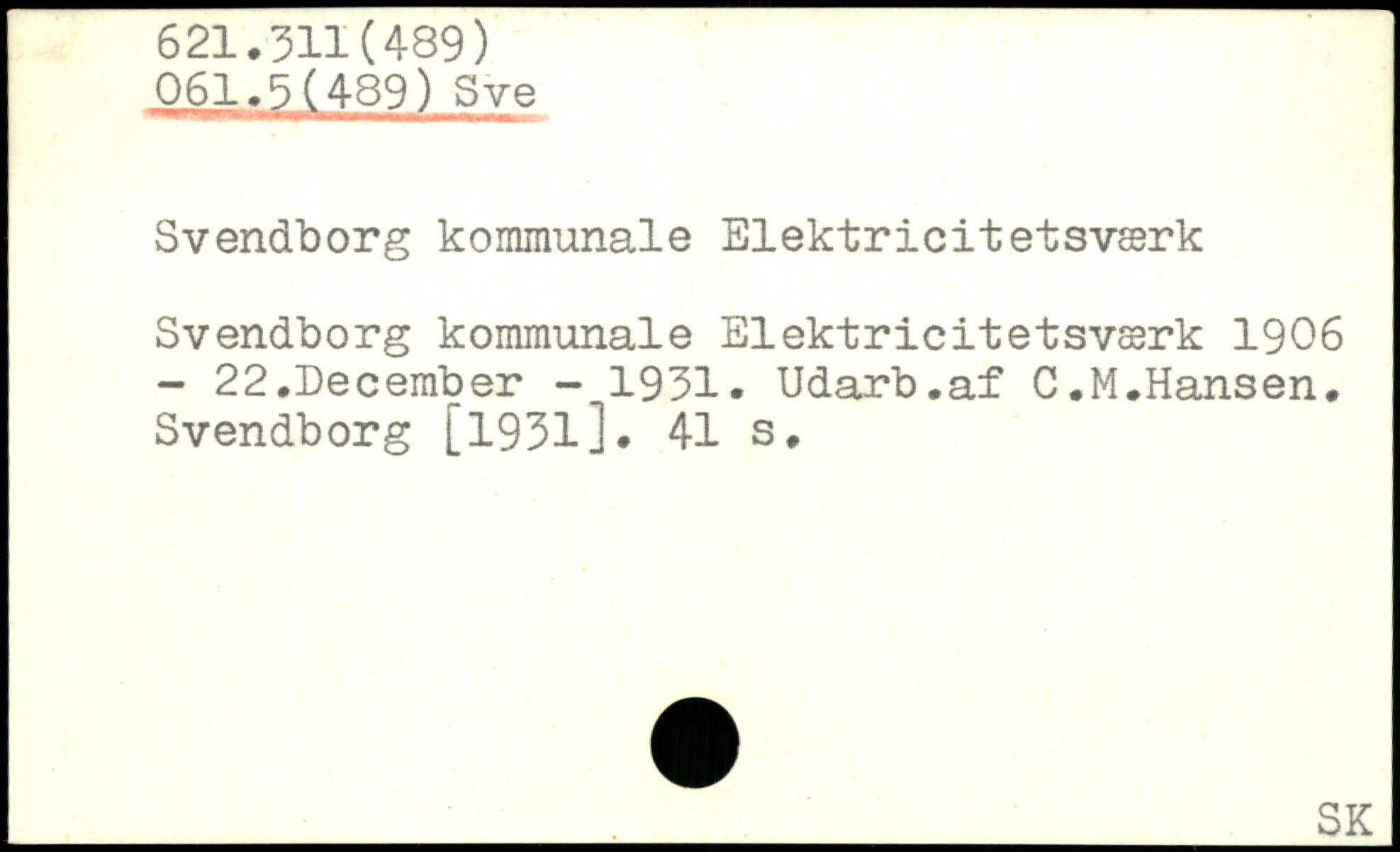 Svendborg kommunale Elektricitetsværk Svendborg kommunale Elektricitetsværk 1906 - 22.December - 1931- Udarb.af C.M.Hansen. Svendborg [1931 ].