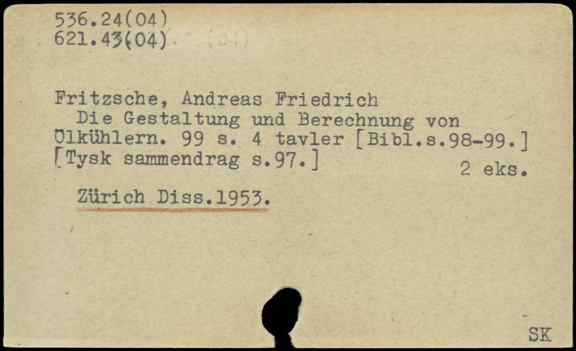 Fritzsche, Andreas Friedrich Die Gestaltung und Berechnung von ülkühlern.
