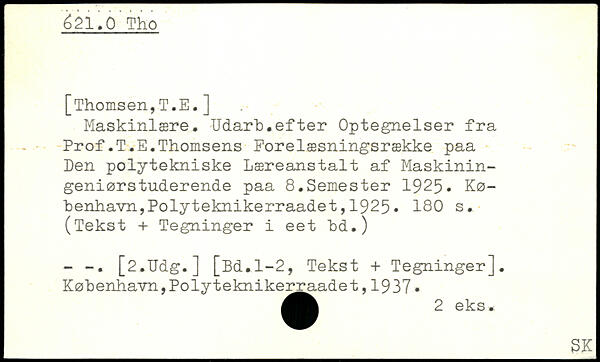 Maskinisere. Udart).efter Optegnelser fra Prof.T.E.Thomsens Forelæsningsrække paa Den polytekniske Læreanstalt af Maskiningeniørs tuderende paa 8.Semester 1925.