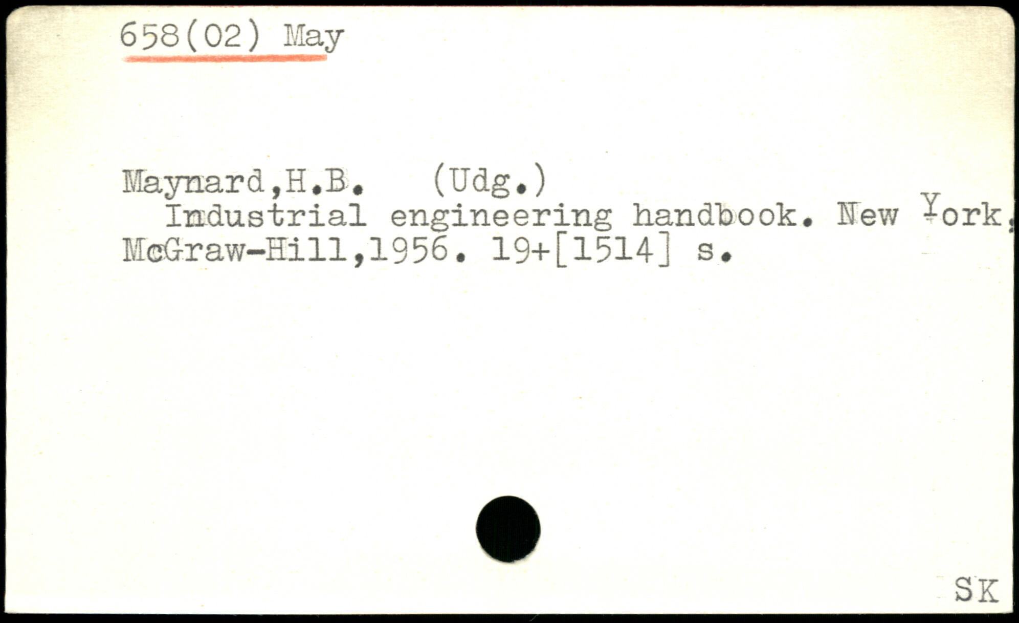 Industrial engineering handbook, hew +ork, McGraw-Hill,1956. 19+[1514] s.