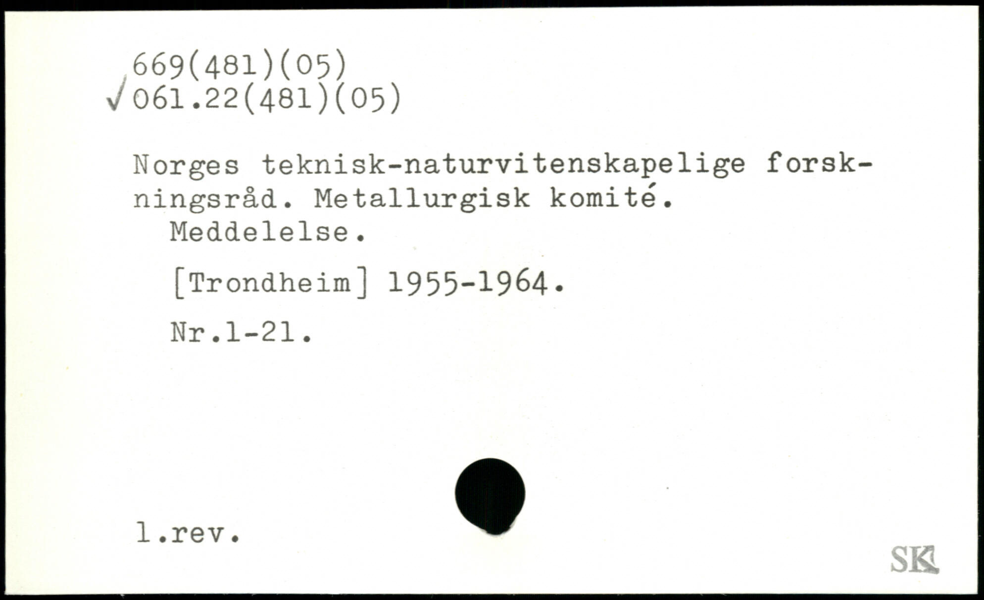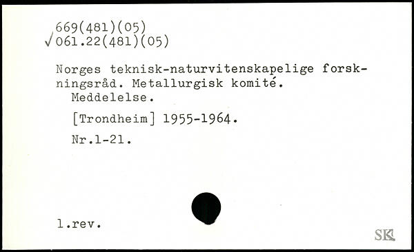 Norges teknisk-naturvitenskapelige forskningsråd. Metallurgisk koraité. Meddelelse.