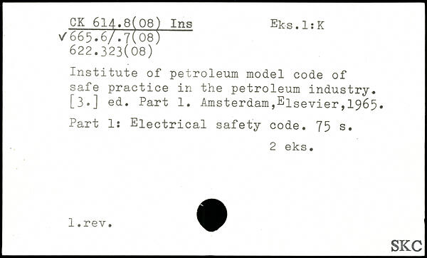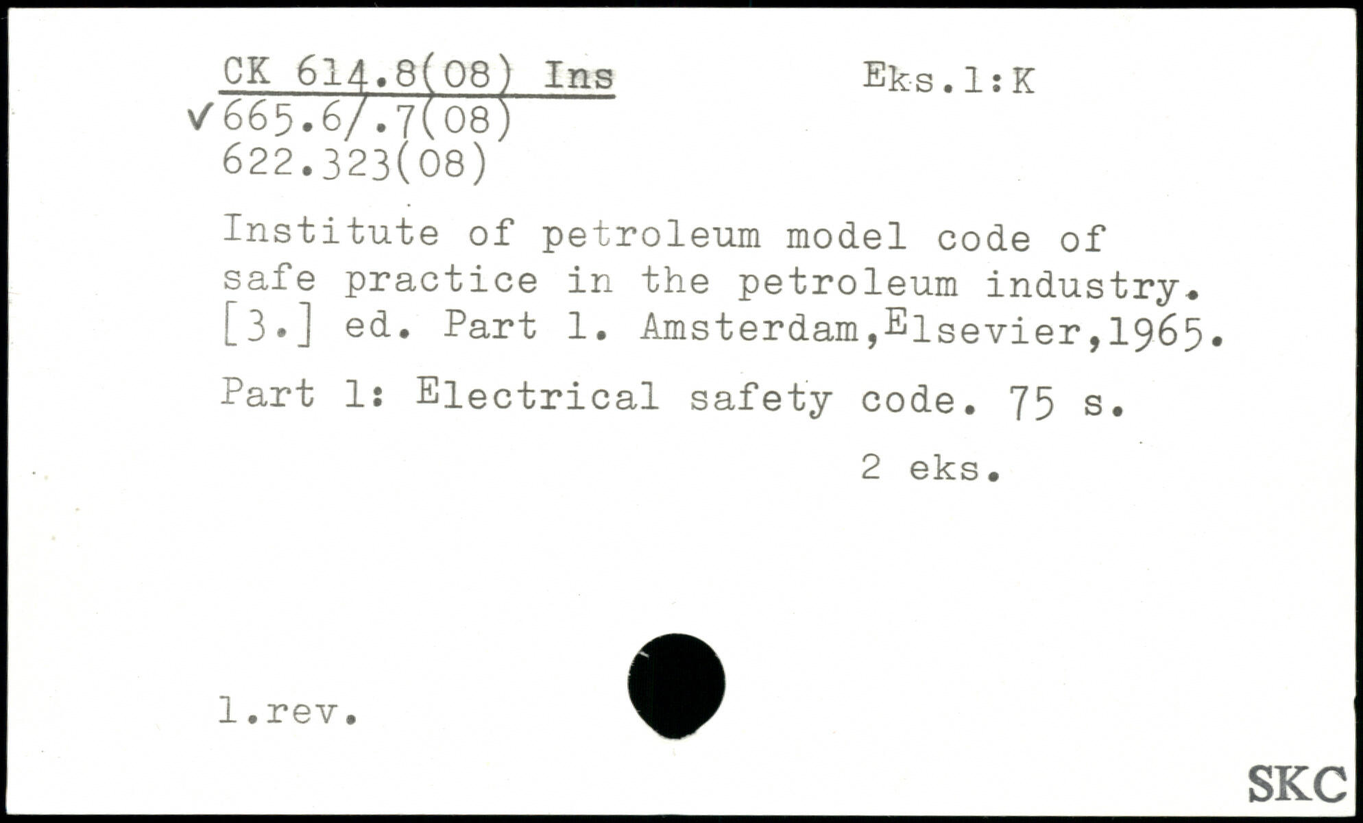 Institute of petroleum model code of safe practice in the petroleum industry. [3.] ed. Part 1.