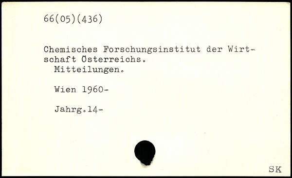 Chemisches Forschungsinstitut der Wirtschaft Österreichs. Mitteilungen,