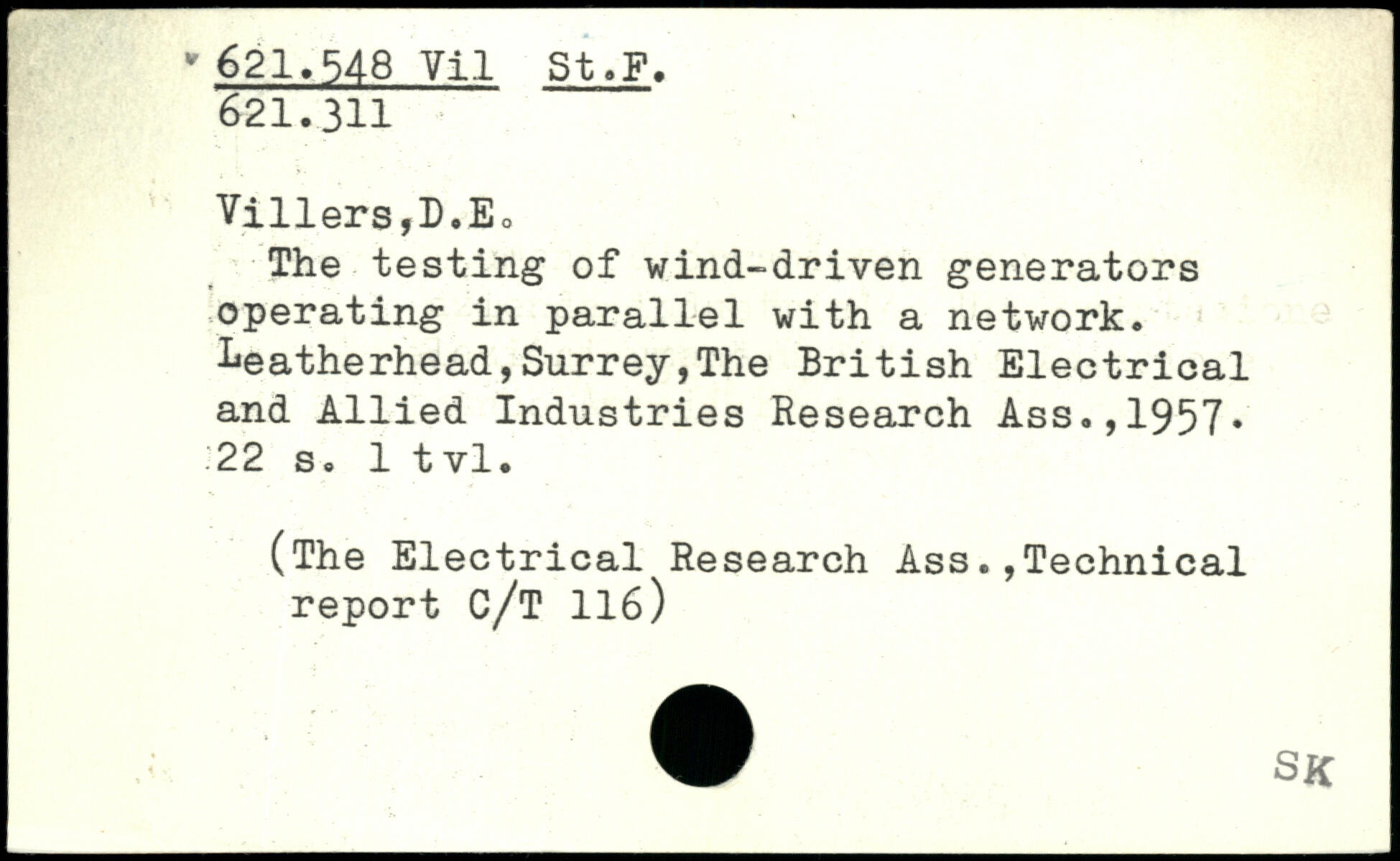 The testing of wind-driven generators operating in parallel with a network, ^eatherhead,Surrey,The British Electrical and Allied Industries Research Ass.,1957.