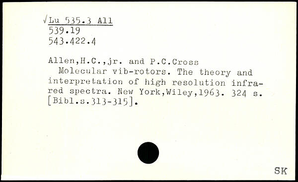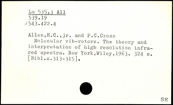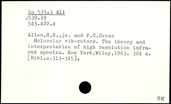 Allen,H.Cjr. and P.C.Cross Molecular vib-rotors. The theory and interpretation of high resolution infrared spectra.