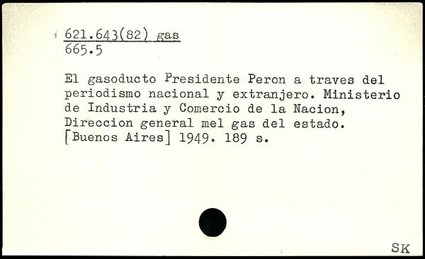 El gasoducto Présidente Peron a traves del periodismo nacional y extranjero. Ministerio de Industria y Comercio de la Nacion, Direccion general mel gas del estado. fBuenos Aires] 1949