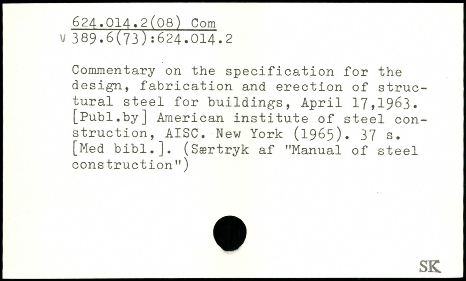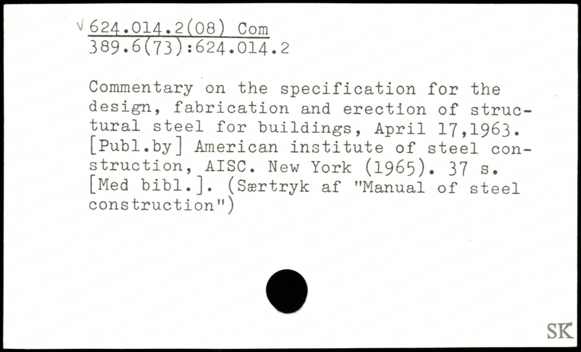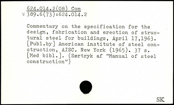Commentary on the specification for the design, fabrication and erection of structural steel for buildings, April 17,1963.