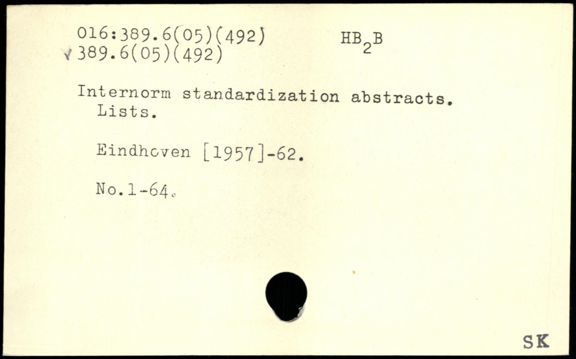Internorm standardization abstracts. Lists. Eindhoven [19573 —62. No.1-64o