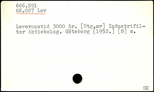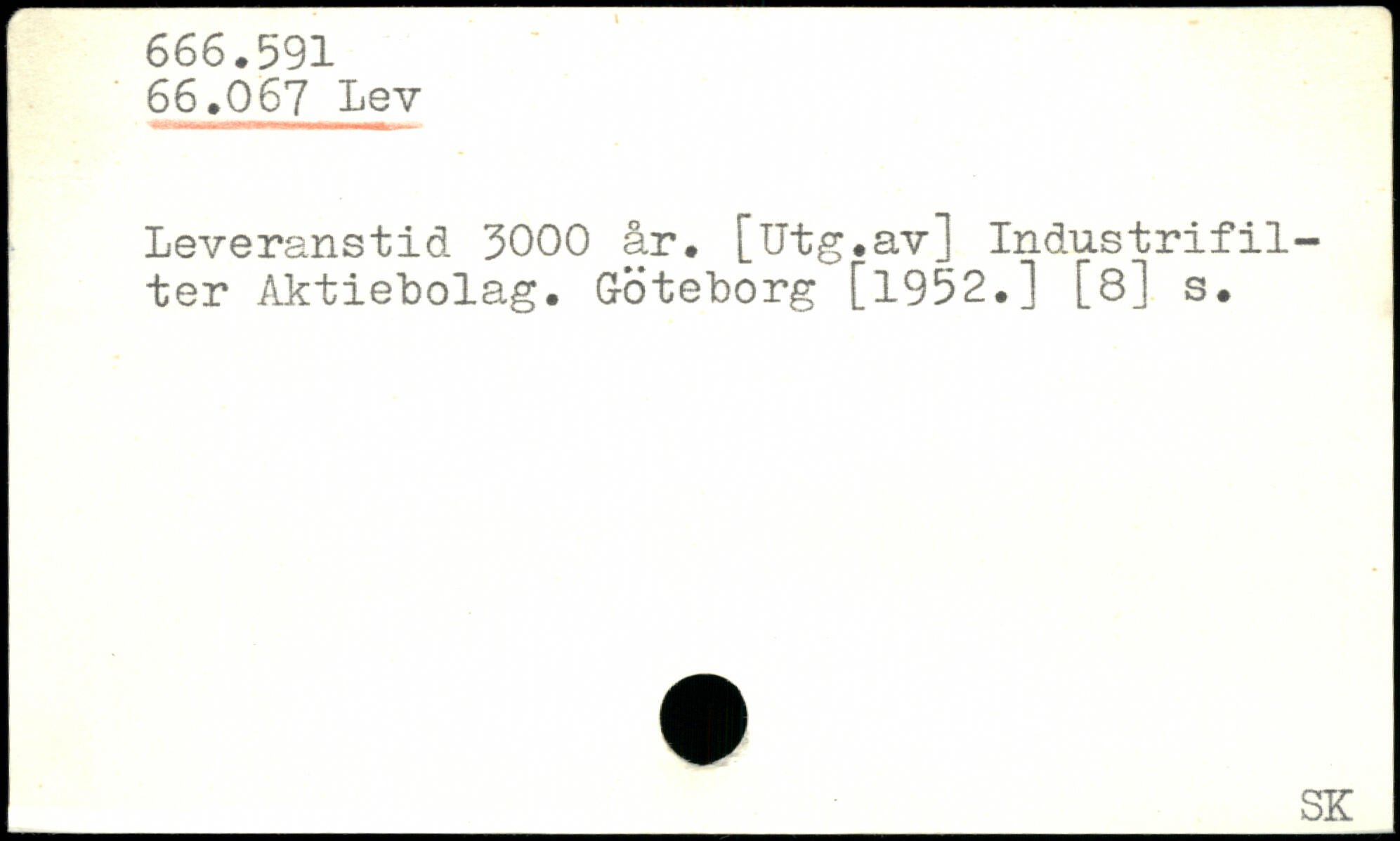Leveranstid 3000 år. [Utg.av] Industrifilter Aktiebolag. Göteborg