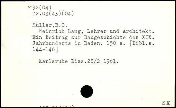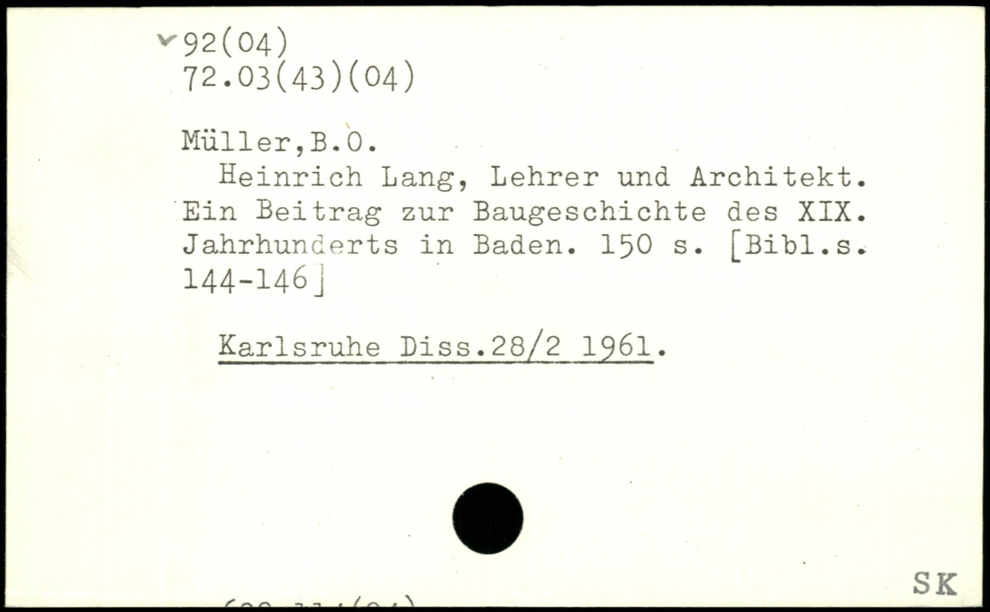 Heinrich Lang, Lehrer und Architekt. Ein Beitrag zur Baugeschichte des XIX. Jahrhunderts in Baden.