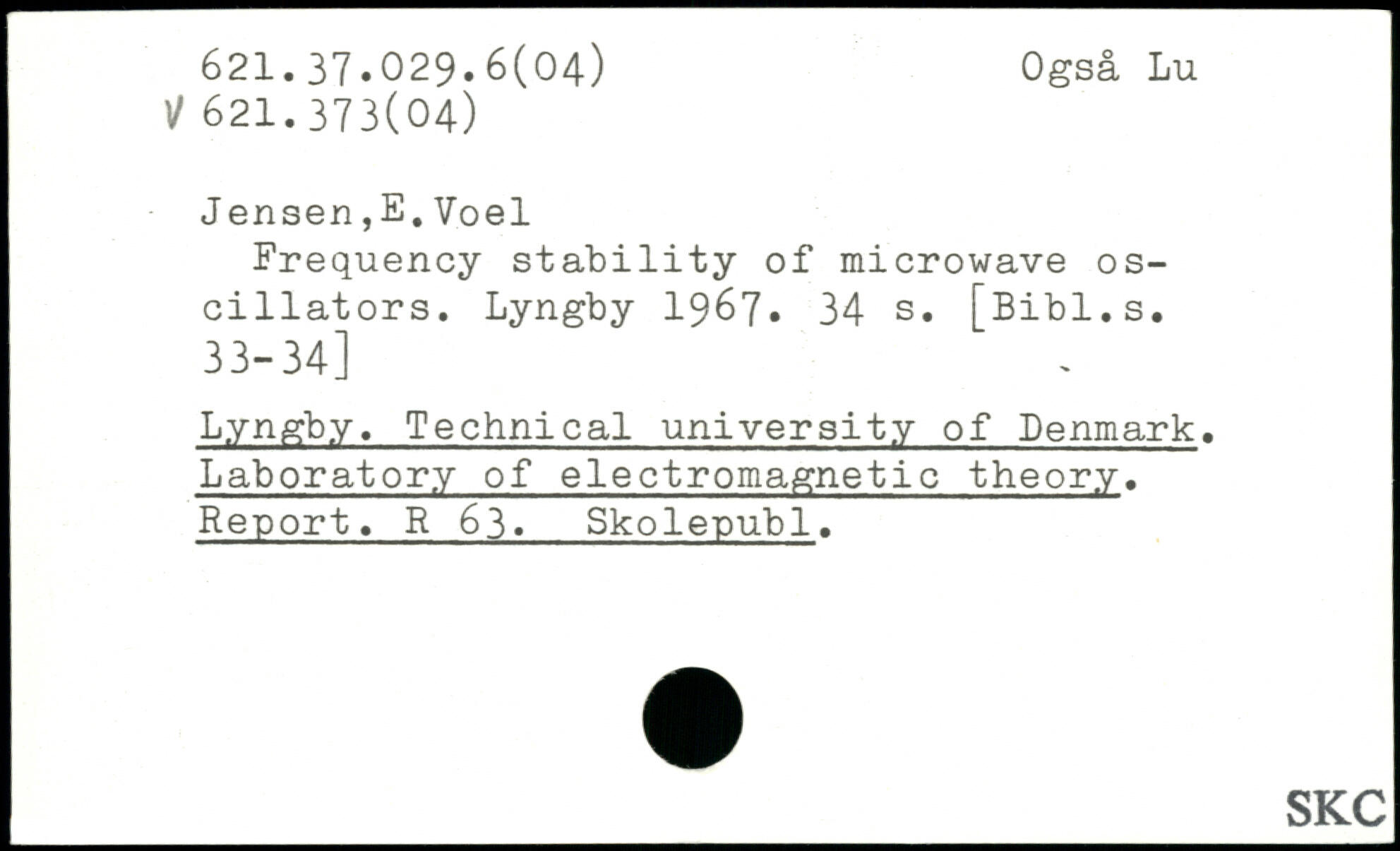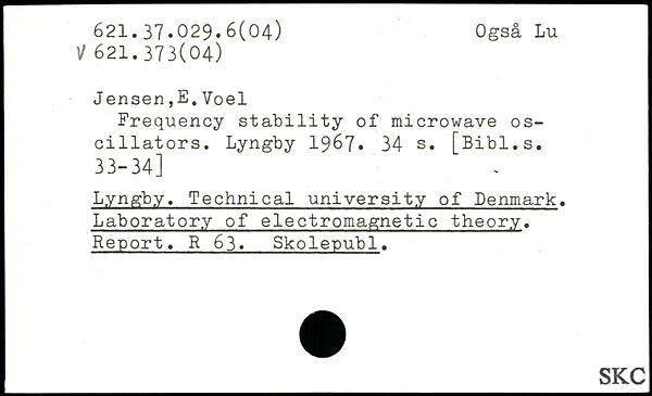 Jensen,E.Voel Frequency stability of microwave oscillators. Lyngby 1967