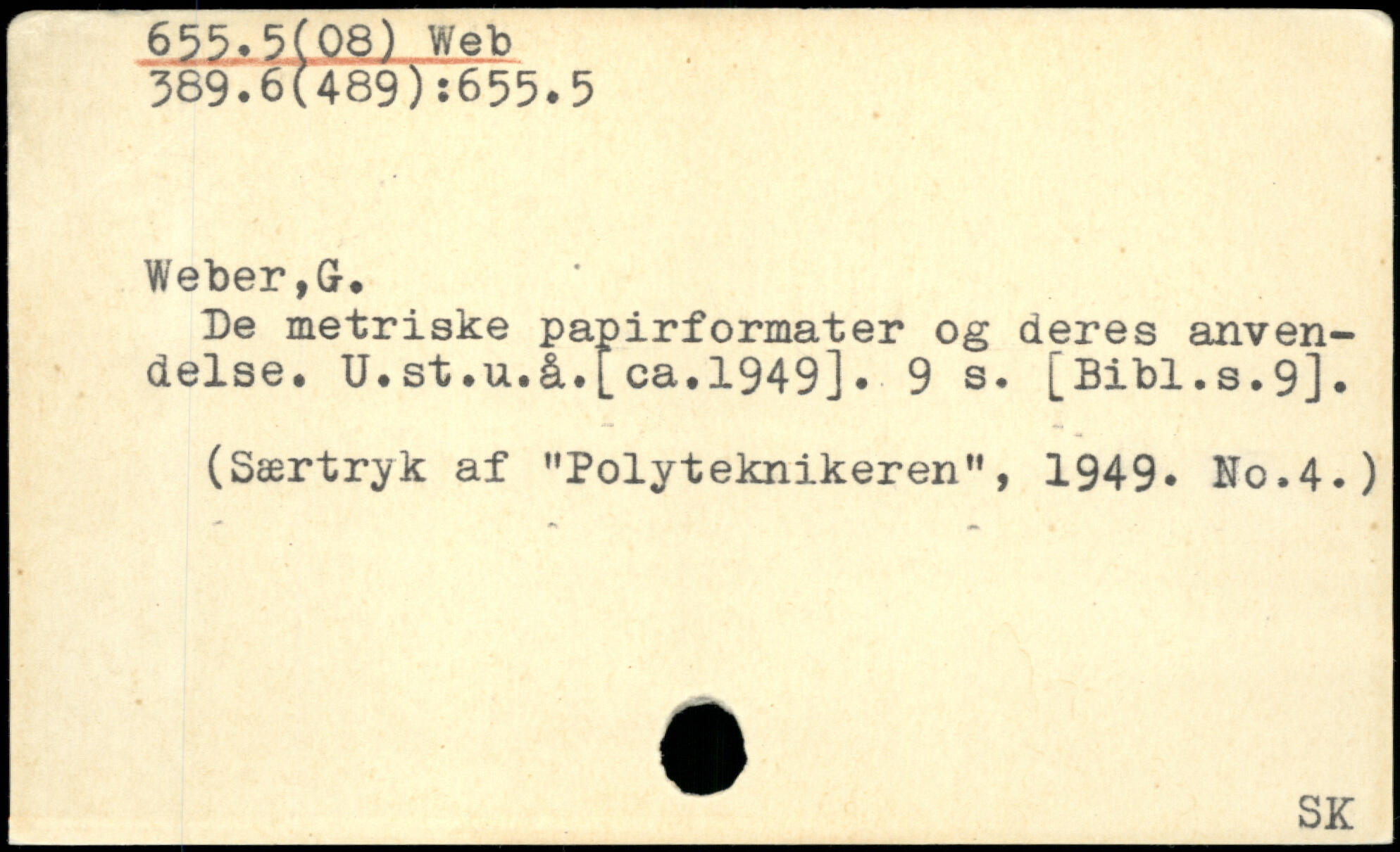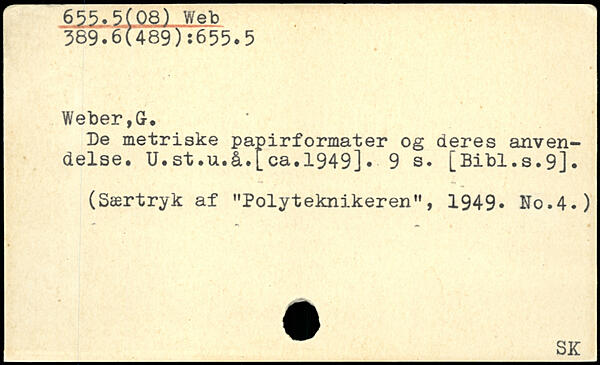 Weber,Gr. De metriske papirformater og deres anvendelse. U.st.u.å.[ca.1949].