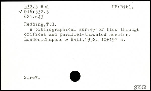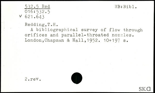A bibliographical survey of flow through orifices and parallel-throated nozzles.