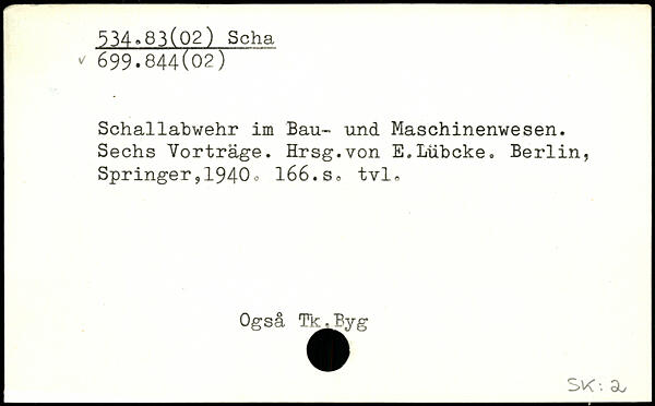 Schallabwehr im Bau- und Maschinenwesen. Sechs Vorträge. Hrsg.von E.Lübcke.