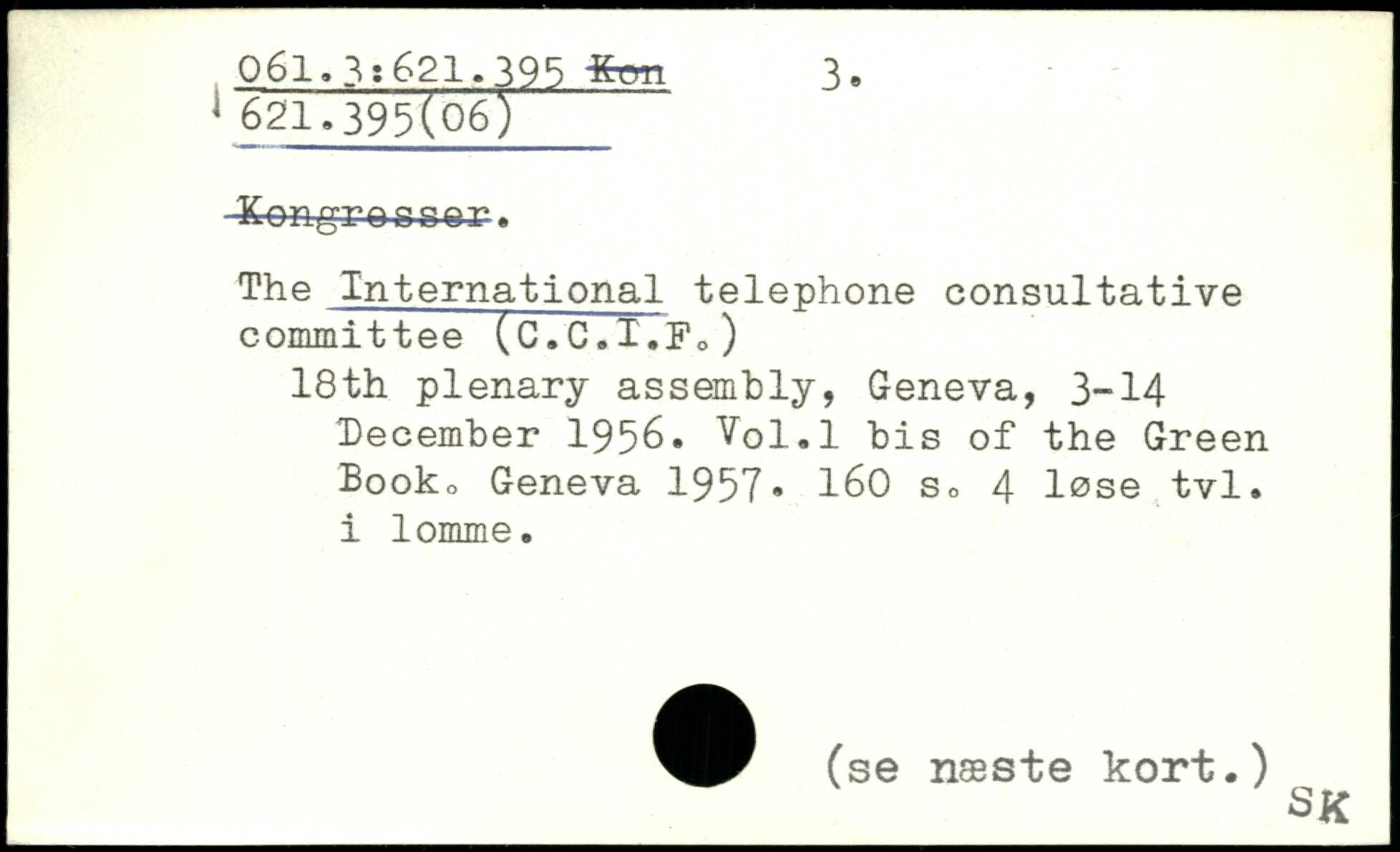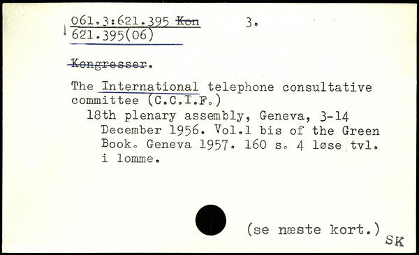 -Kongroosor. The International telephone consultative committee (C.C.I.Fo) 18th plenary assembly, Geneva, 3-14 December 1956. Vol.l bis of the Green Booko