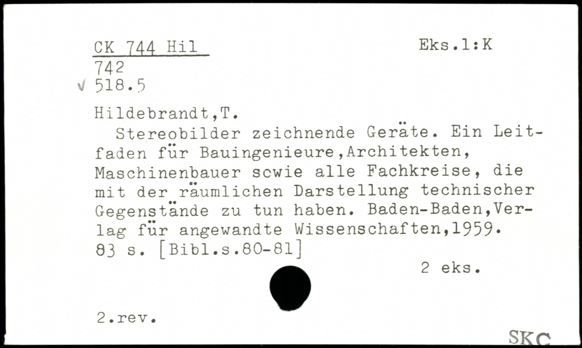 Stereobilder zeichnende Gerate. Ein Leitfaden für Bauingenieure,Architekten, Maschinenbauer sowie alle Fachkreise, die mit der räumlichen Darstellung technischer Gegenstände zu tun haben.