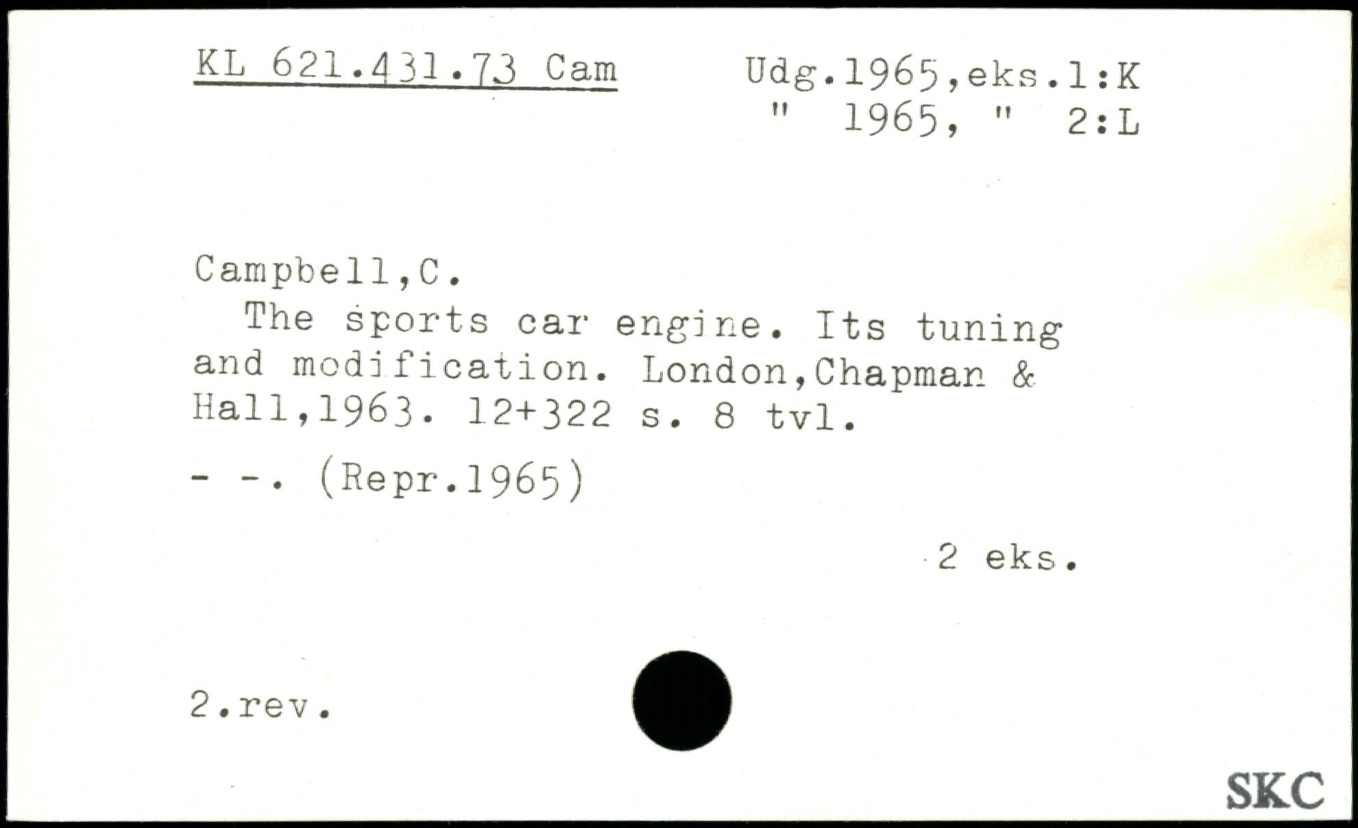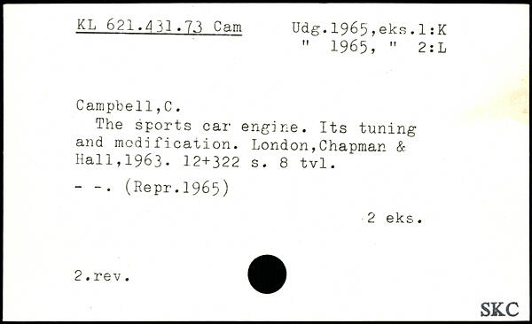 " 1965, " 2:L Campbell,C. The sports car engine. Its tuning and modification.