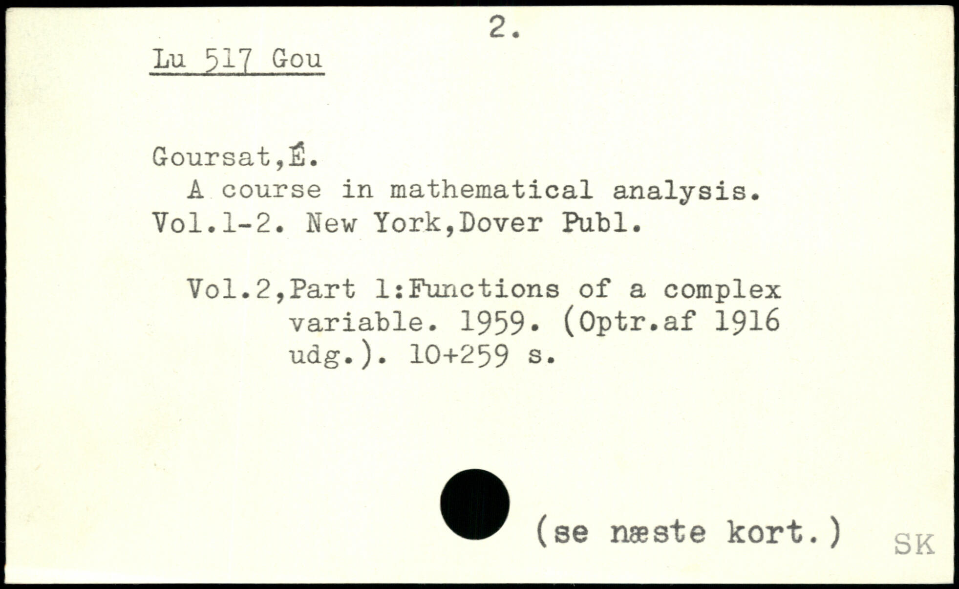 Lu 517 Gou Goursat,É. A course in mathematical analysis.