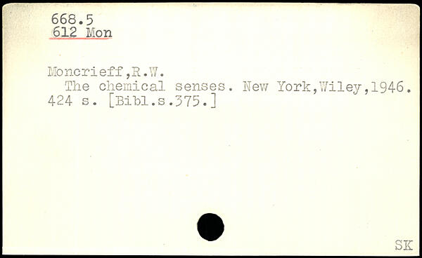 Mo ner i ef f, R. W. The Chemical senses. New York,T,7iley,1946.