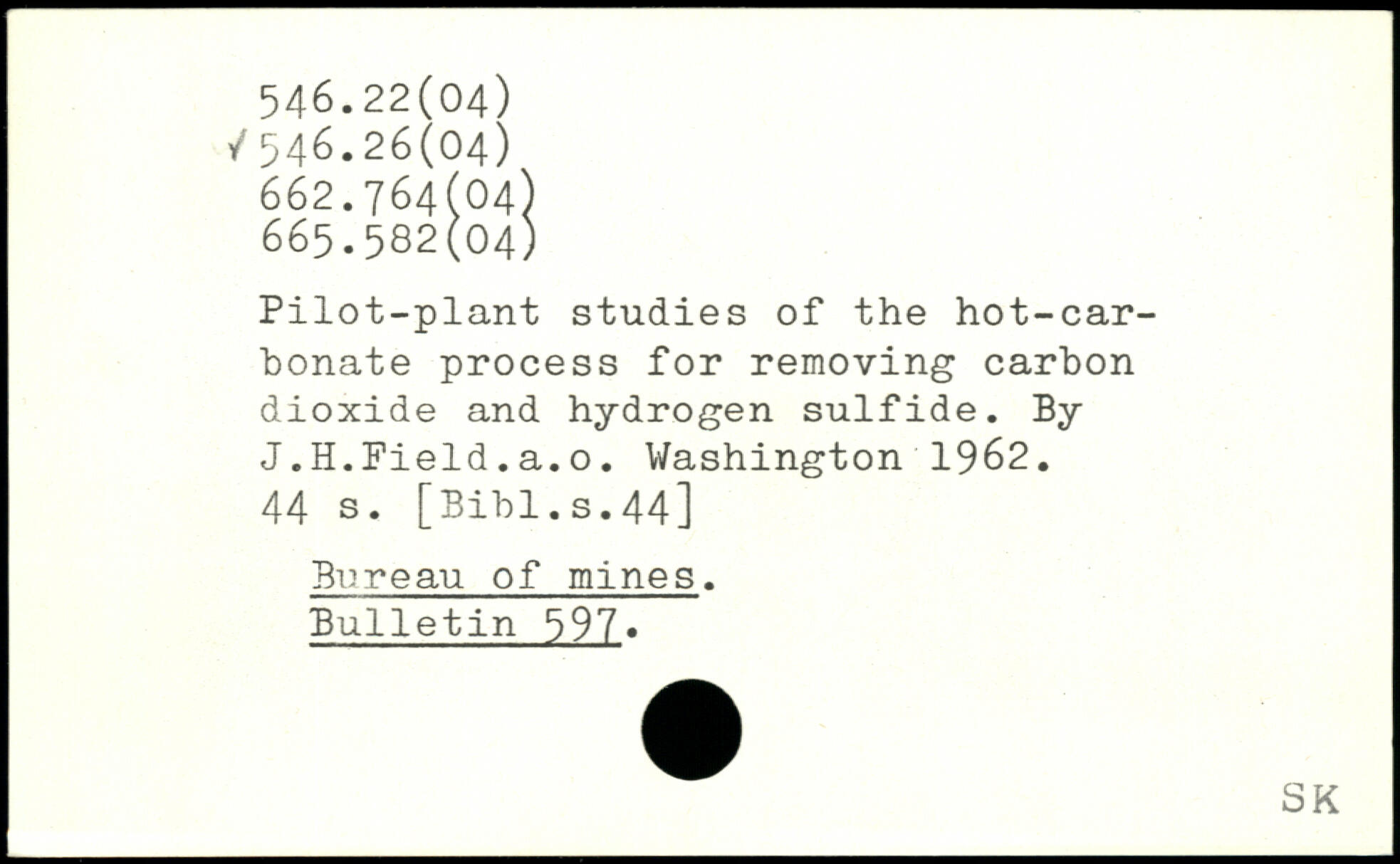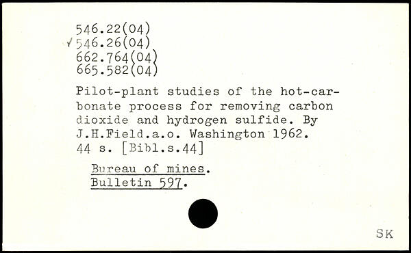 Pilot-plant studies of the hot-carbonate process for removing carbon dioxide and hydrogen sulfide. By J.H.Field.a.o.