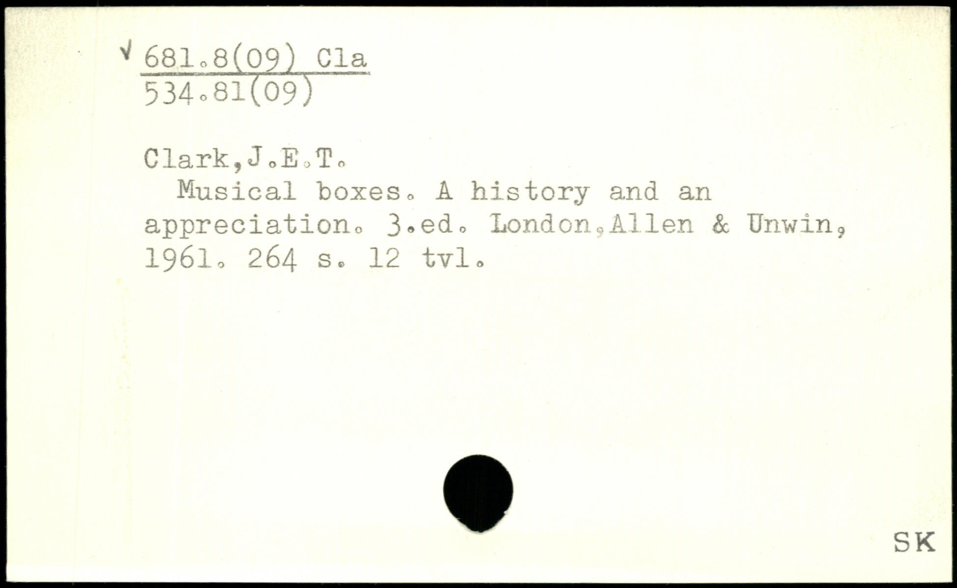 Musical boxes, A history and an appreciation, 3,©do London,Allen & Unwin? 1961o