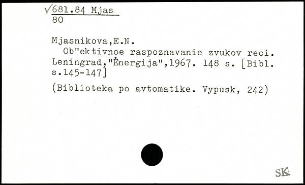 OVektivnoe raspoznavanie zvukov reci. Leningrad,"Energija",1967. I