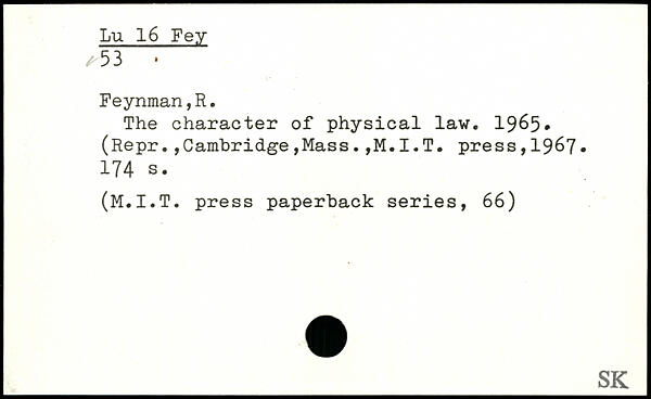 The character of physical law. 1965. (Repr.,Cambridge,Mass.press,1967