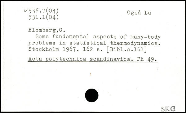 Some fundamental aspects of many-body problems in statistical thermodynamics.