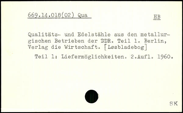 Qualitäts- und Edelstahle aus den metallurgischen Betrieben der DDR, Teil 1, Berlin, Yerlag die Wirtschaft, fhcsbladebog] Teil 1: Liefermöglichkeiteno