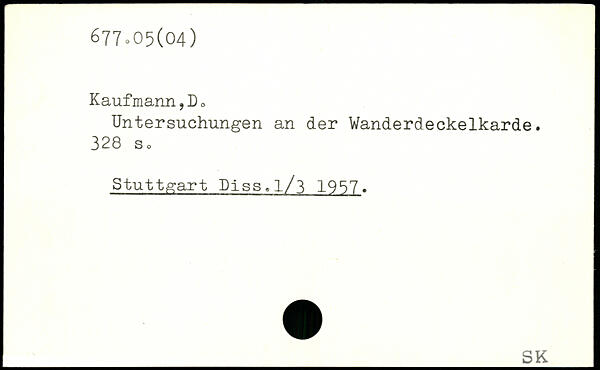 Untersuchungen an der Wanderdeckelkarde.