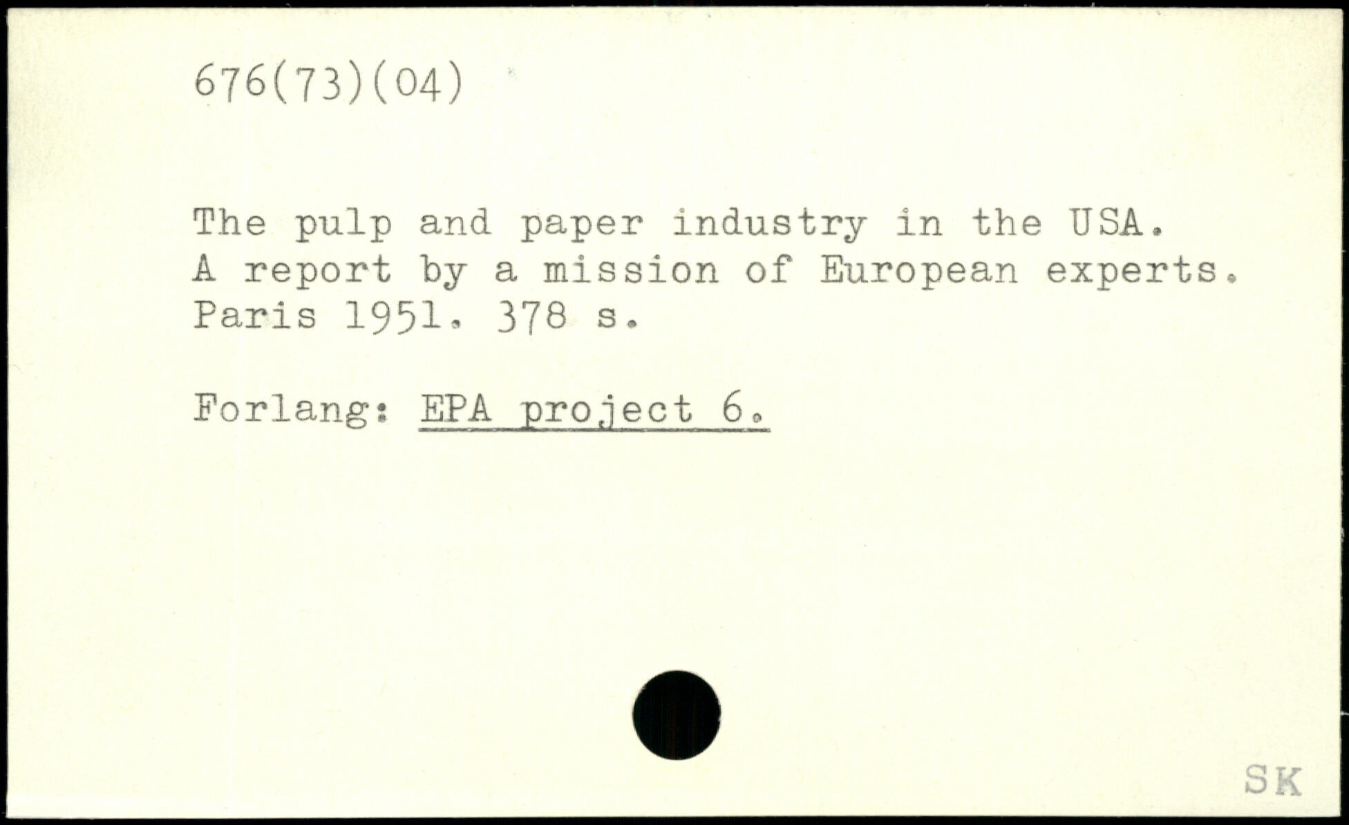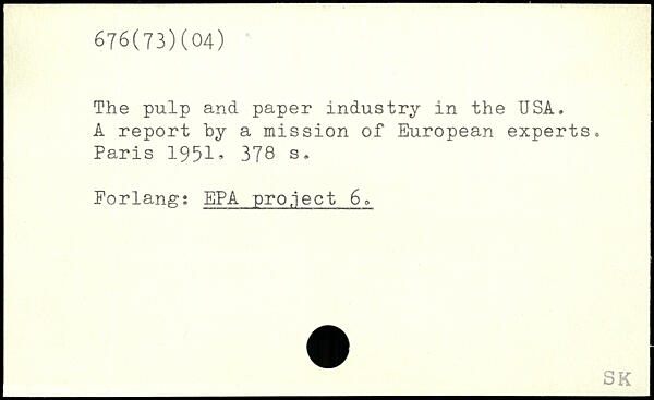 The pulp and paper industry in the USA, A report by a mission of European experts