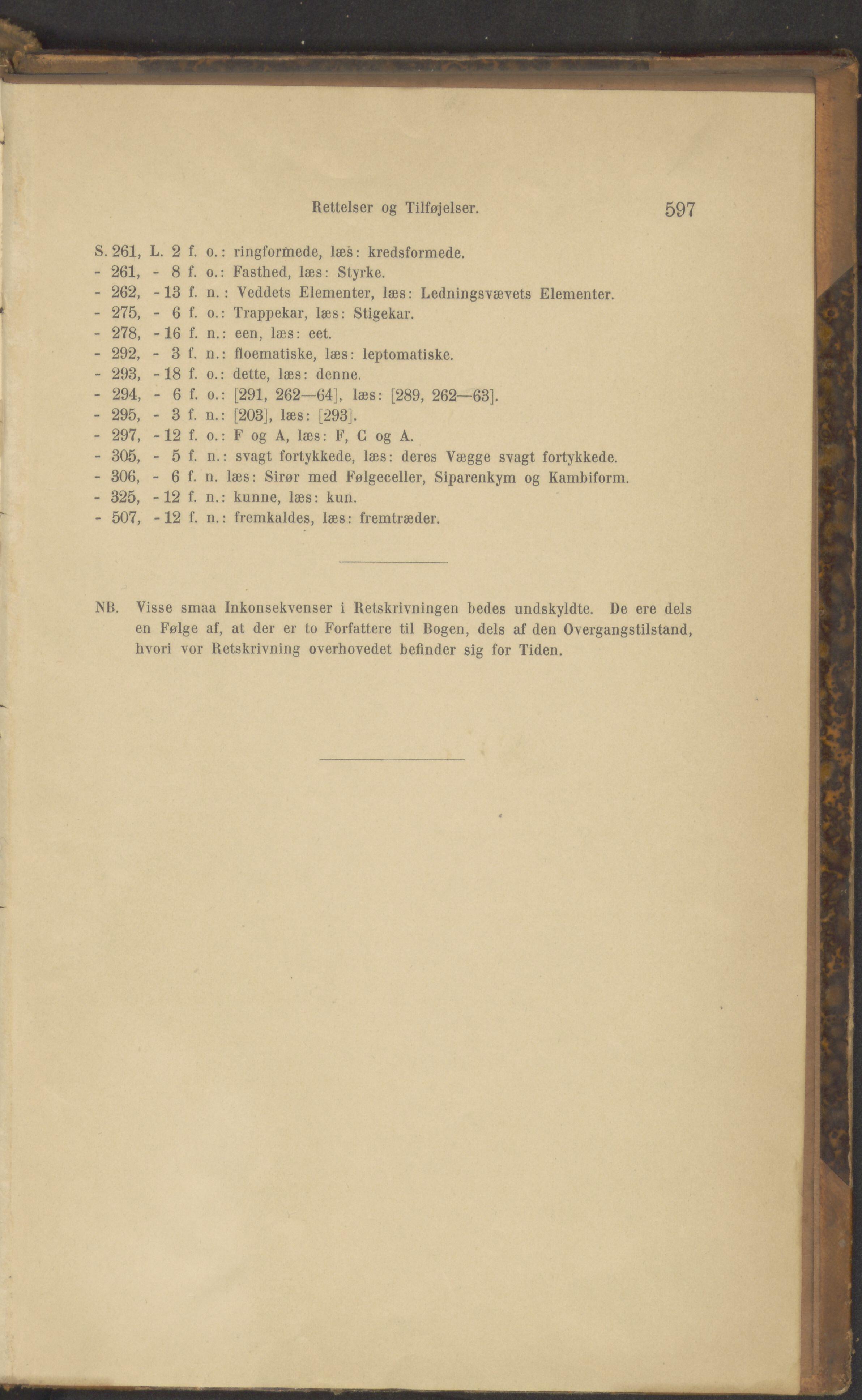 - 262, -13 f. n. : Veddets Elementer, læs: Ledningsvævets Elementer.