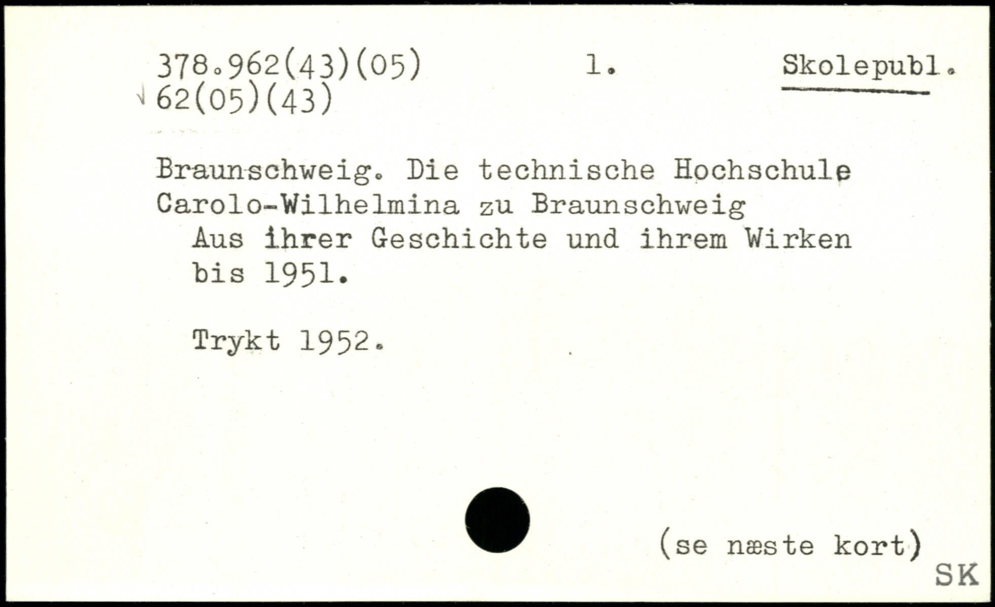 Braunschweig, Die technische Hochschule Carolo-Wilhelmina zu Braunschweig Aus ihrer Geschichte und ihrem Wirken his 1951. Trykt 1952.