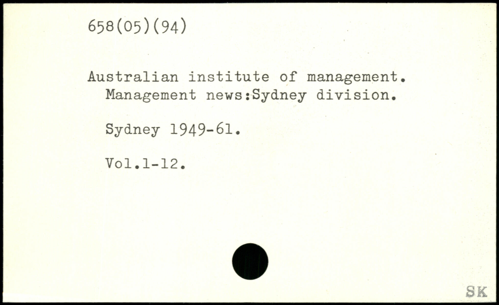 Australian institute of management. Management newsiSydney division. Sydney 1949-61.