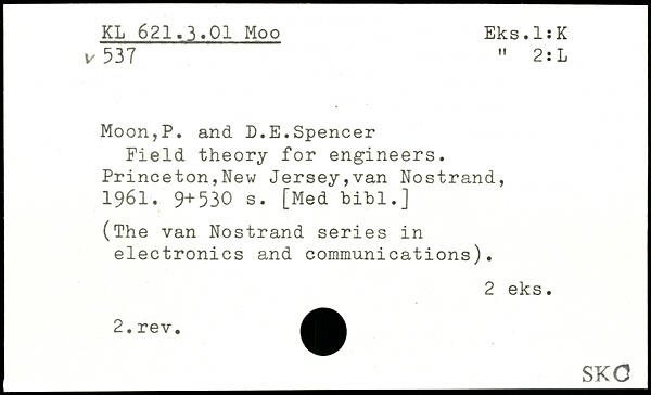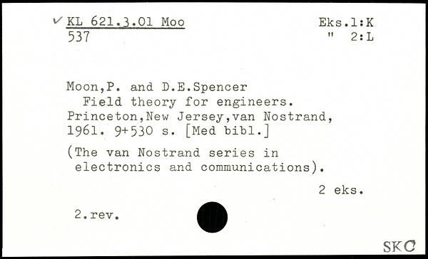Field theory for engineers. Princeton,New Jersey,van Nostrand, 1961.