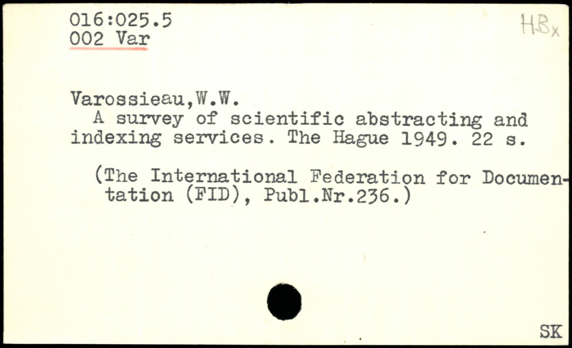 UDK: 016:025.5, 1, 002 Var