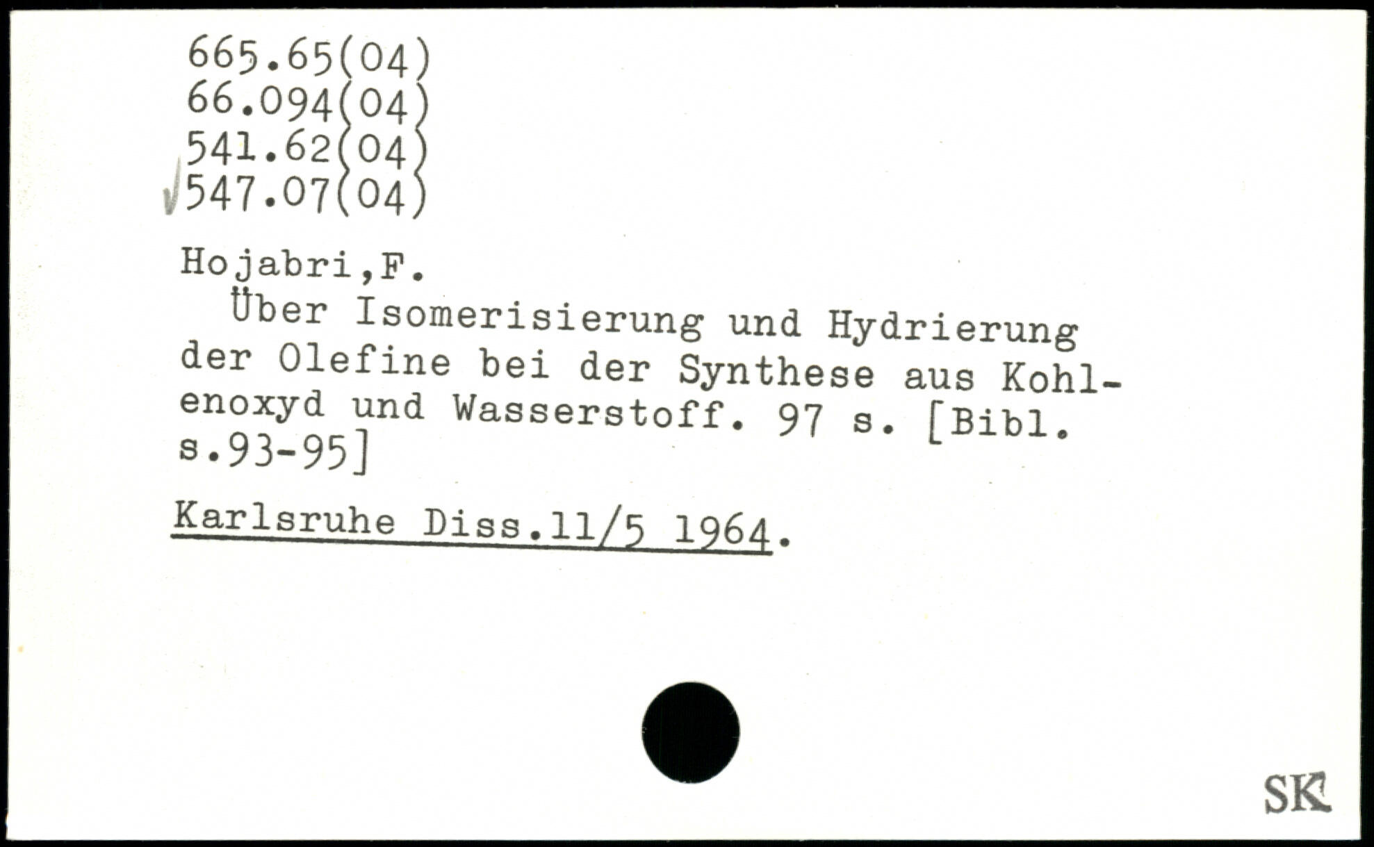 Über Isomerisierung und Hydrierung der Olefine bei der Synthese aus Kohlenoxyd und Wasserstoff.