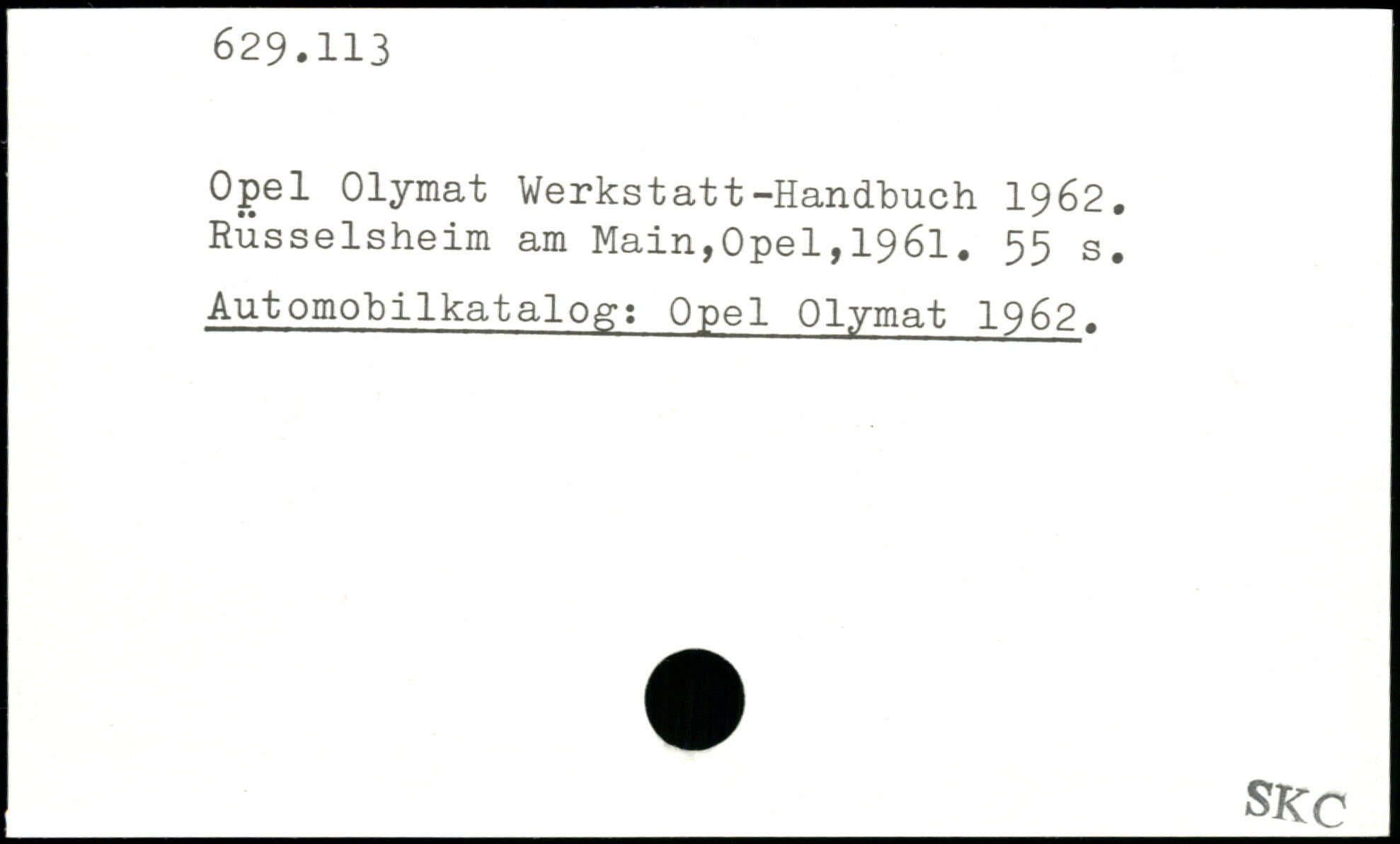 Opel Olymat Werkstatt-Handtuch 1962.