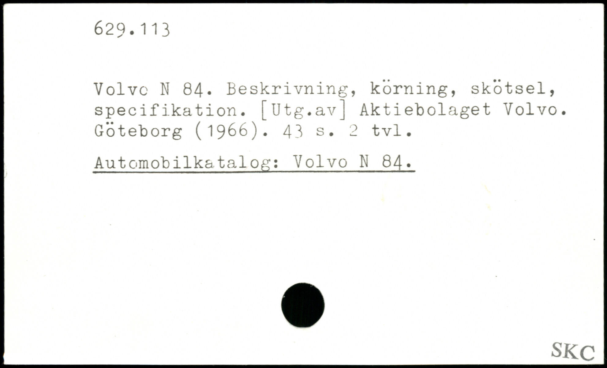 Volvo N 84- Beskrivning, körning, skötsel, specifikation. [Utg.av] Aktiebolaget Volvo. Göteborg (1966).