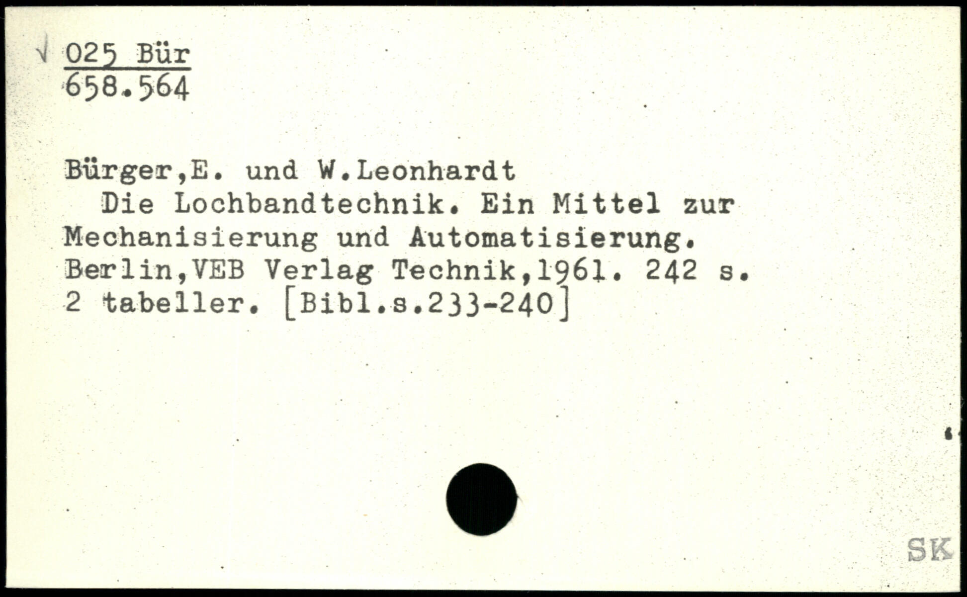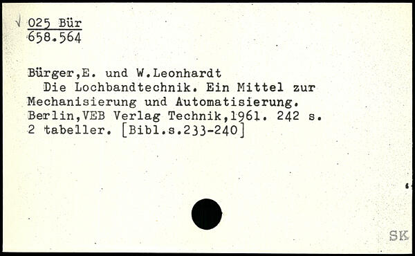 Die Lochbandtechnik, Ein Mittel zur Mechanisierung und Automatisierung.