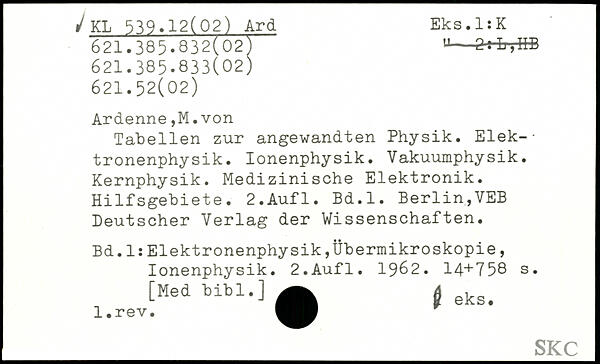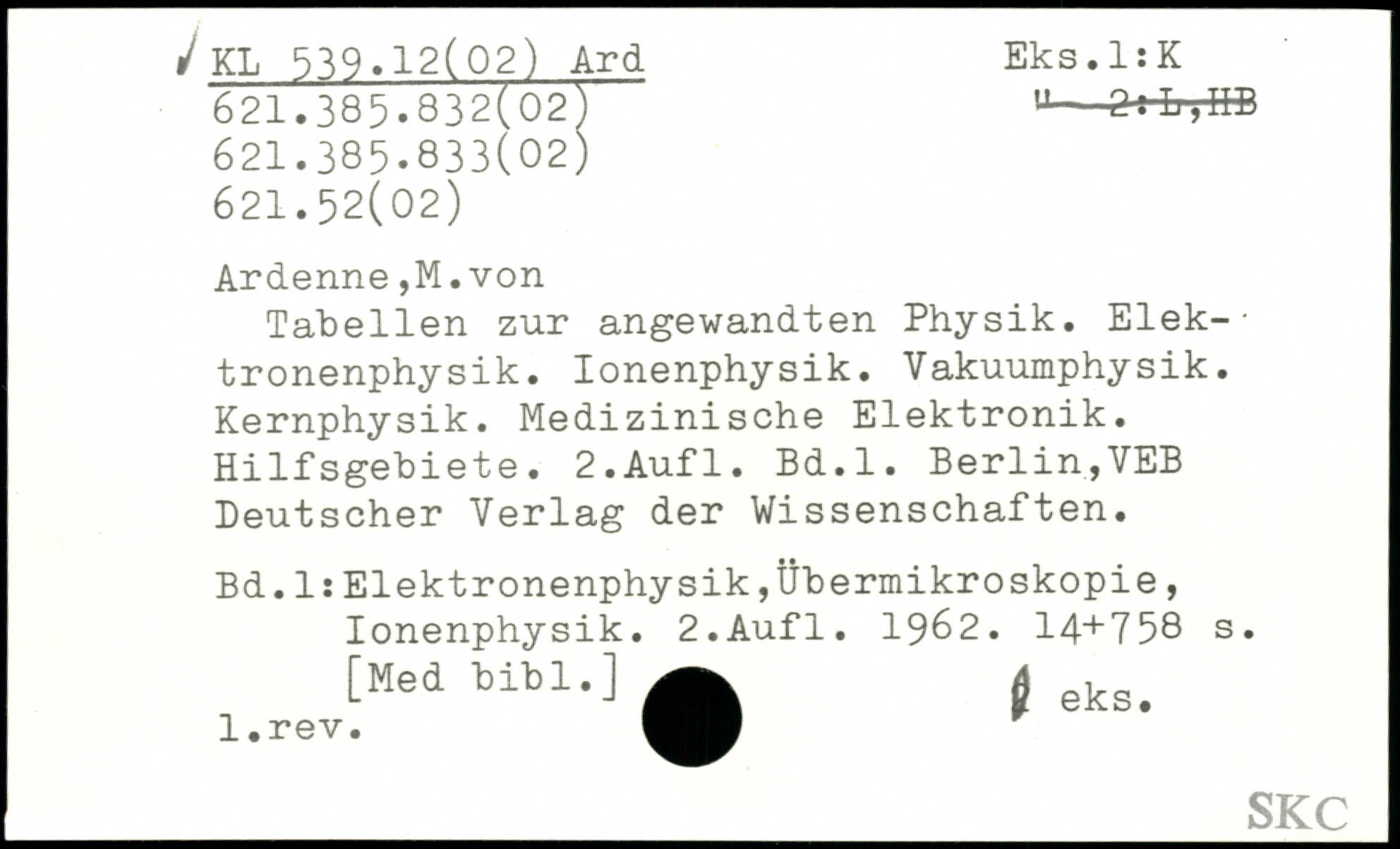 Tabellen zur angewandten Physik. Elek-. tronenphysik. Ionenphysik. Vakuumphysik. Kernphysik. Medizinische Elektronik. Hilfsgebiete.