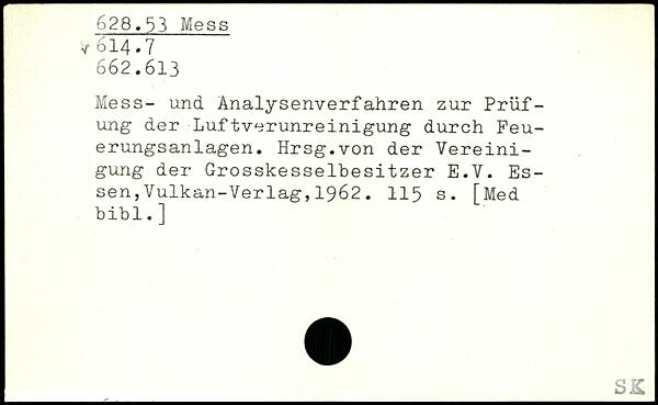 Mess- und Analysenverfahren zur Prüfung der Luftverunreinigung durch Feuerungsanlagen. Hrsg.von der Vereinigung der Grosskesselbesitzer E.V.