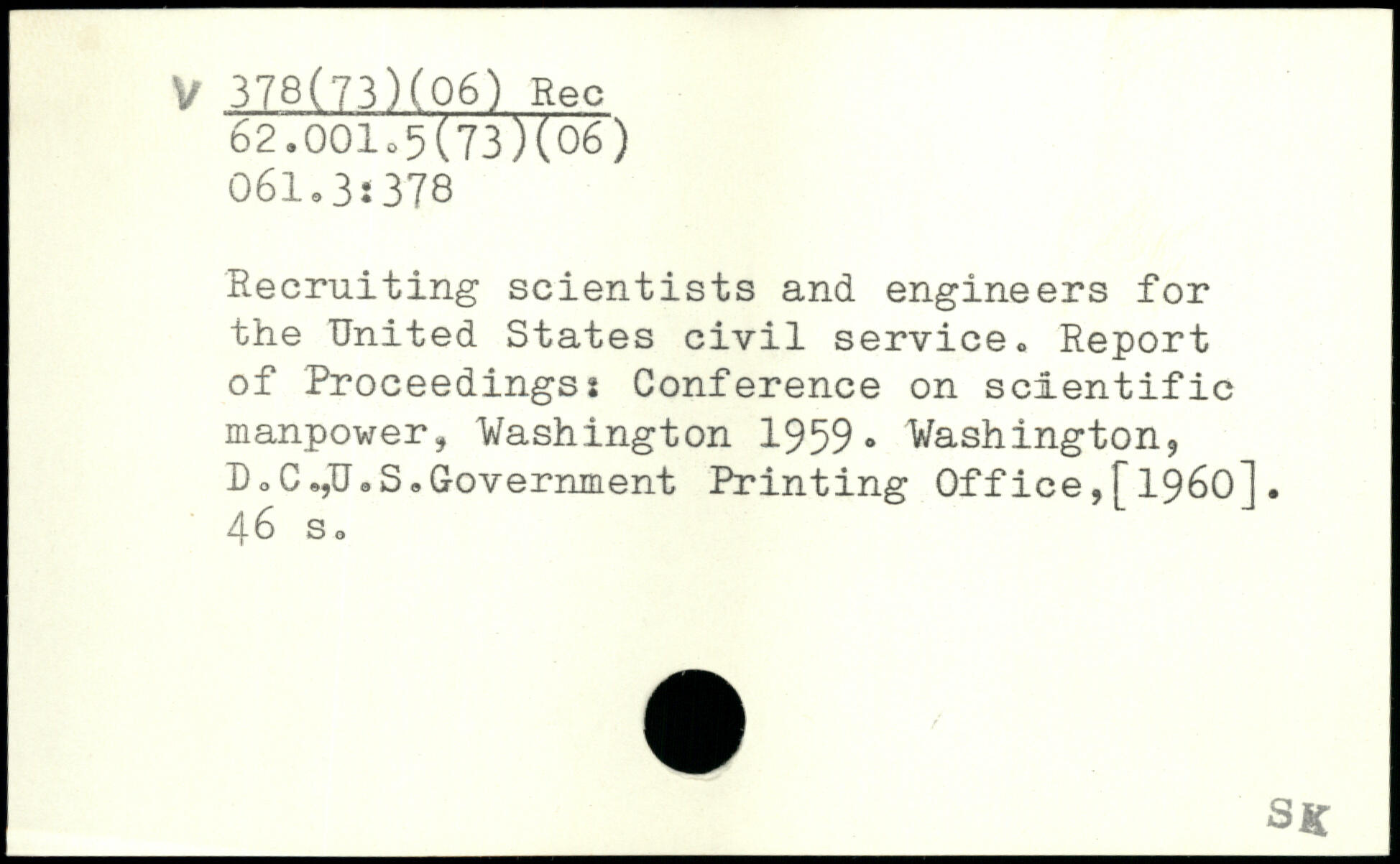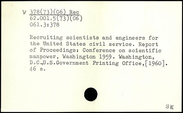 Recruiting scientists and engineers for the United States civil serviceo Report of Proceedings: Conference on scientific manpower