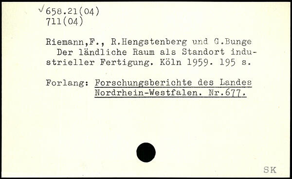 Riemann,F., R.Hengstenberg und G.Bunge Der ländliche Raum als Standort industrieller Fertigung