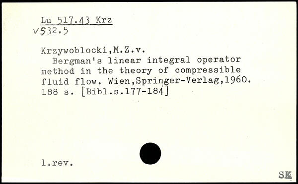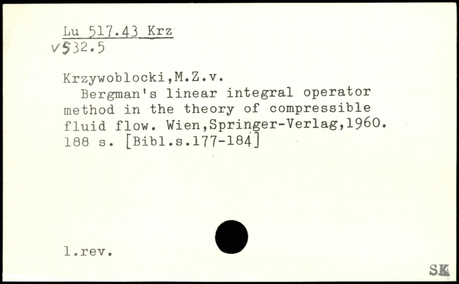 Bergman's linear integral operator method in the theory of compressible fluid flow.