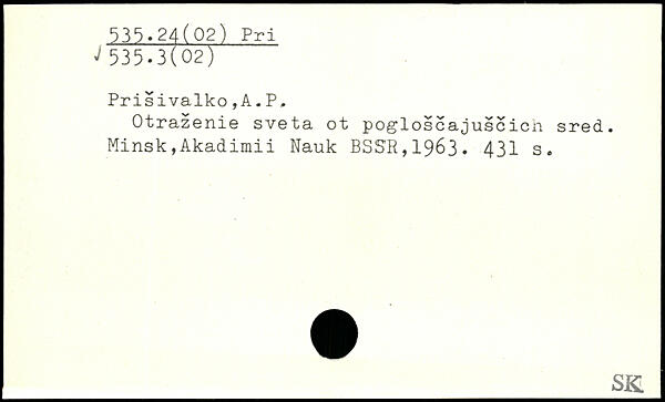 Otrazenie sveta ot pogloscajuscich sred. Minsk,Akadimii Nauk BSS'R,1963.